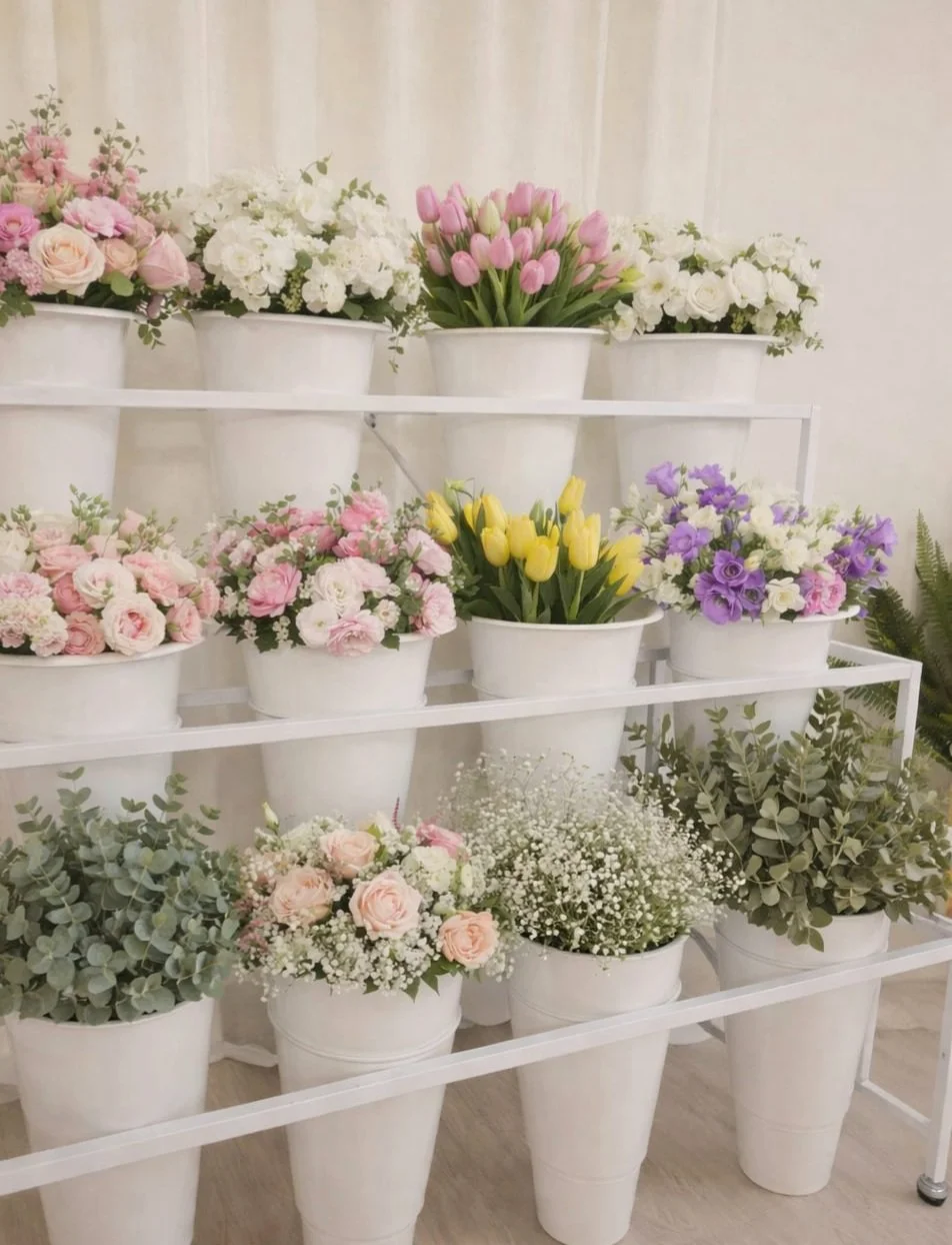 12 flower buckets & stand